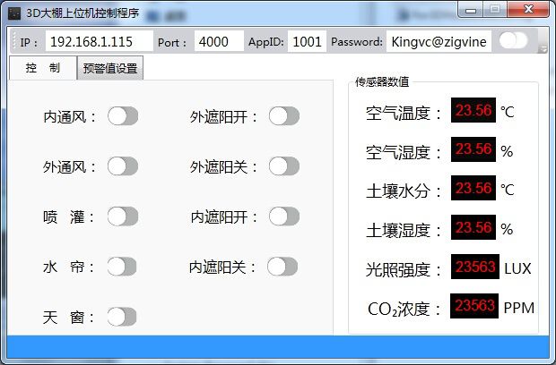 該平臺通過3D技術(shù)進行智能農(nóng)業(yè)大棚的虛擬仿真。系統(tǒng)提供溫濕度、水分、光照等參數(shù)的監(jiān)測和遮陽簾、排風(fēng)扇、灌溉系統(tǒng)的自動控制功能。通過控制策略的設(shè)定,可模擬如何讓作物獲得最佳的生長環(huán)境。通過該系統(tǒng)學(xué)生可熟悉傳感器的使用、WSN應(yīng)用程序的開發(fā)。